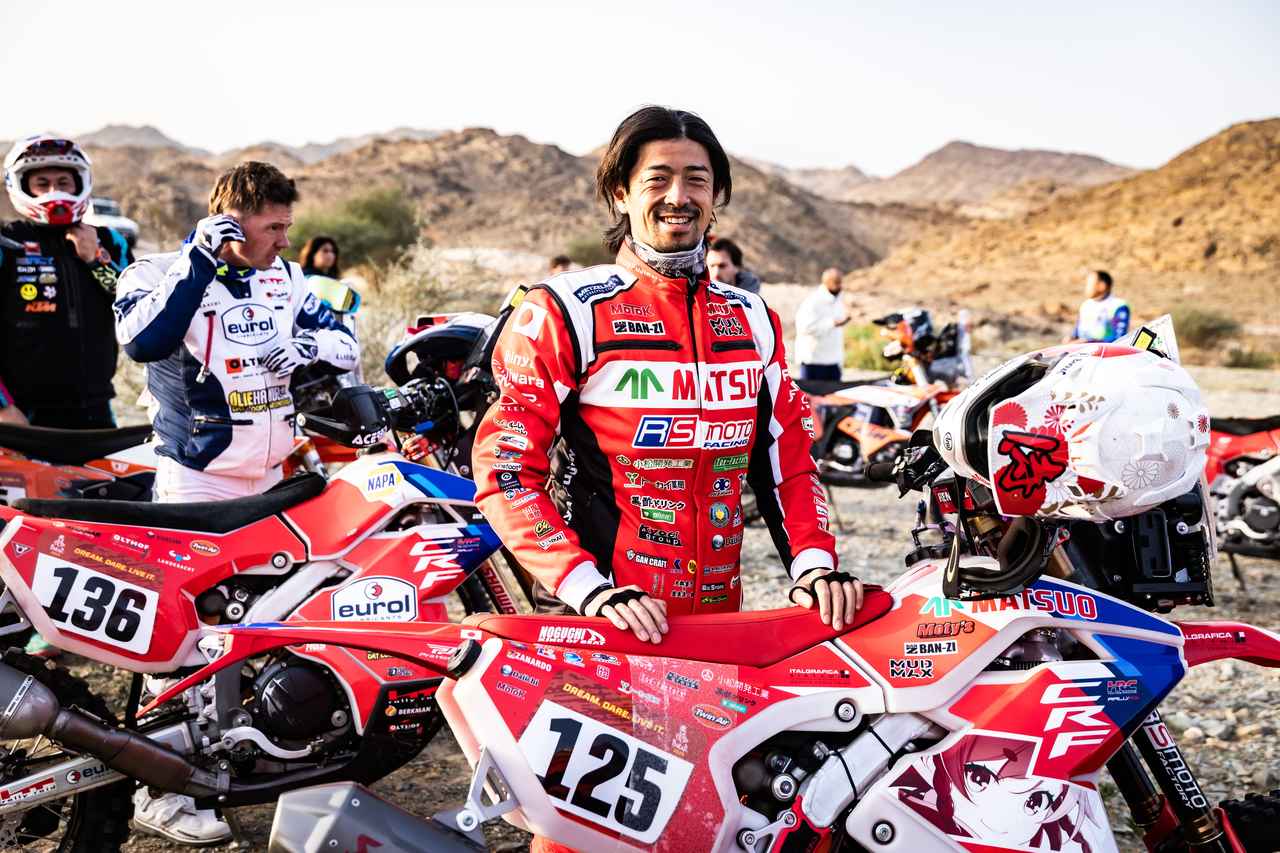 その後も不運は続いた。視界不良のまま入った砂丘エリアで、小さな穴に気づけずフロントから突っ込むアクシデントも発生。それでも、藤原は総合41位(ステージ順位43位)、ラリー2クラス総合28位でフィニッシュラインに辿り着いた。